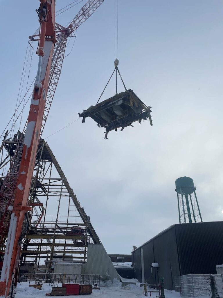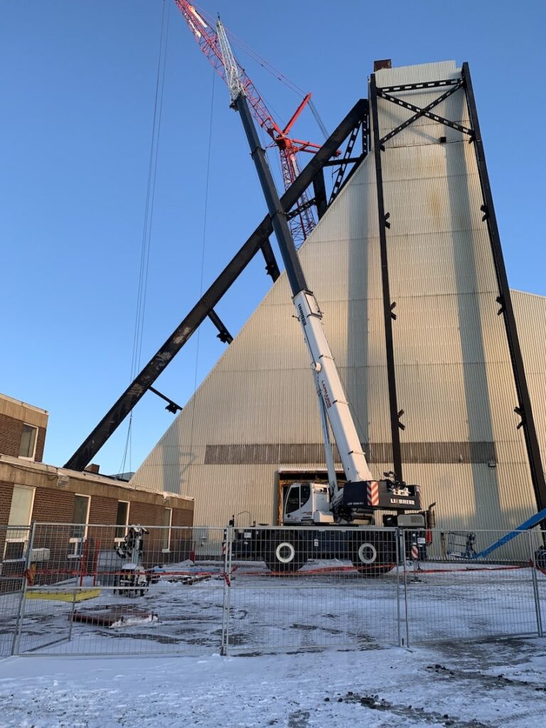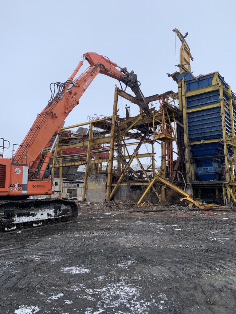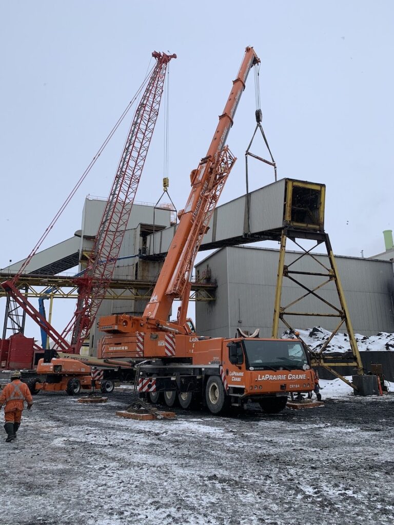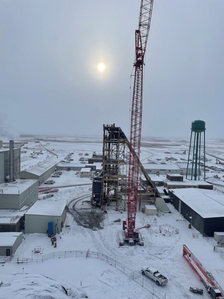 In 2022, SEC was awarded the Headframe Demolition project at the Mosaic K1 Mine Site. SEC teamed up with partners LaPrairie Crane & Rakowski Group and battled the winter elements to complete this project incident and injury free. Strategic planning and engineering were a major component to this project which included 6 engineered lift plans and a full engineered demolition plan. All demolished material was sorted, salvaged, and strategically removed from site during the demolition activities providing no disruption to the client’s day to day operations.